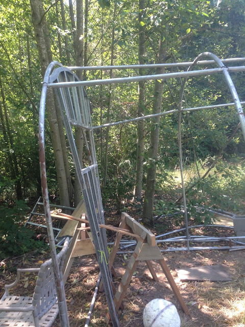 Once upon a time Pete collected pieces of an old unwanted green house and built us a Quonset hut to live in for the winter. We loved that Quonset for many years, until the mice moved in, along with the damp and mold.